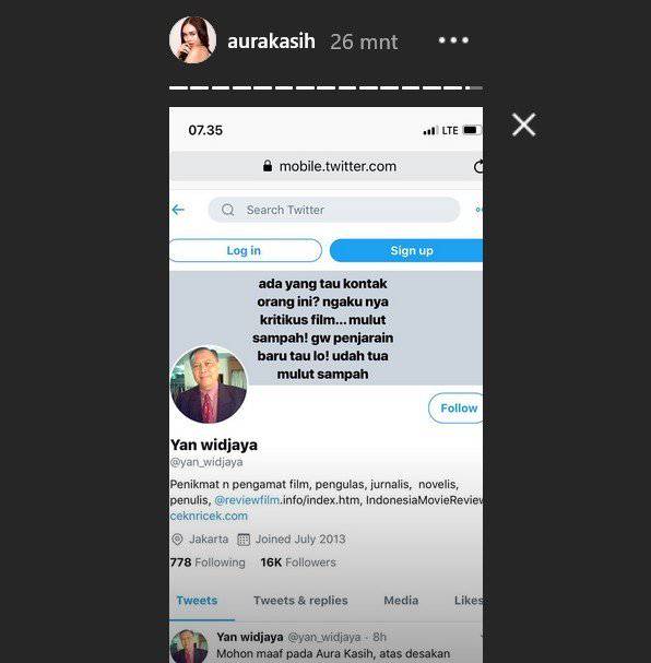 Seperti diberitakan sebelumnya Aura Kasih juga sempat mencak-mencak di Instagram Stories. Dia itu tak terima dengan guyonan Yan Widjaya di Twitter: