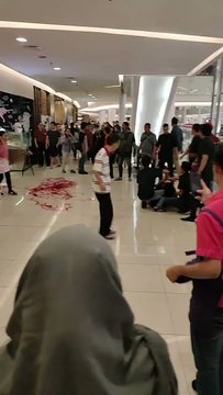 Dalam video yang hingga kini telah disaksikan lebih dari 310 ribu kali tersebut, terlihat korban penusukan tengah mendapatkan pertolongan dari banyak orang, di mana darahnya berceceran pada lantai mall.